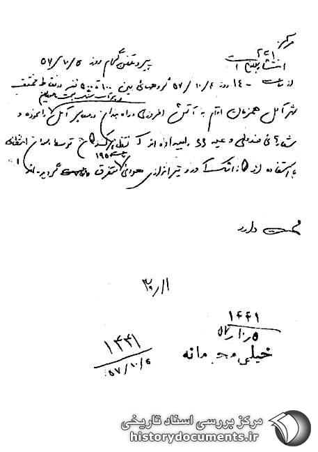1. « از صبح روز 4 /10 /57 بازار شهر آمل، کلیه بانکها و 80% مغازههای شطح شهر آمل تعطیل میباشد. ضمناً قرار است از ساعت 1400 روز جاری اجتماعی با شرکت کلیه طبقات مختلف مردم شهر مزبور در تکیه آملیها تشکیل گردد». (پرونده 11 /30 /524)