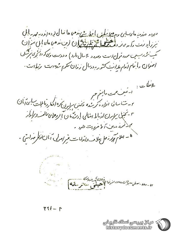 4- نفوذ در بین آنها ضرورت دارد؛ 5- اعلام هرگونه عمل خلاف و اقدامات غیراصولی آنان از نظر ضدامنیتی؛ - مصطفی صابریان متولد 1335 دانشجوی فنی بابل رشته اتومکانیک ضدجاسوسی