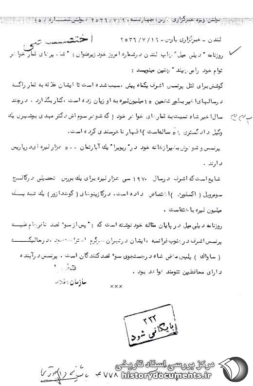 روزنامه دیلی میل در پایان مقاله خود نوشته است که : «پس از سوءقصد نافرجام علیه پرنسس اشرف در جنوب فرانسه، ایشان در تهران سرگرم استراحت بود، در حالی که (ساواک) پلیس مخفی شاه در جستجوی سوءقصدکنندگان است. پرنسس در آینده دارای محافظین تنومند خواهد بود.