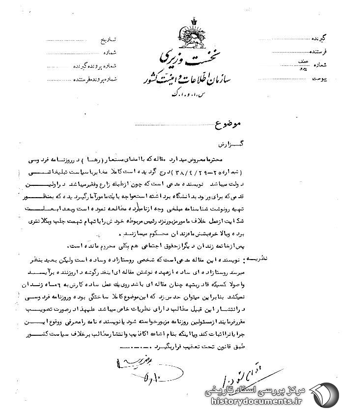 مقرر فرمایند از مسئولین روزنامه مزبور خواسته شود یا نویسنده نامه را معرفی و