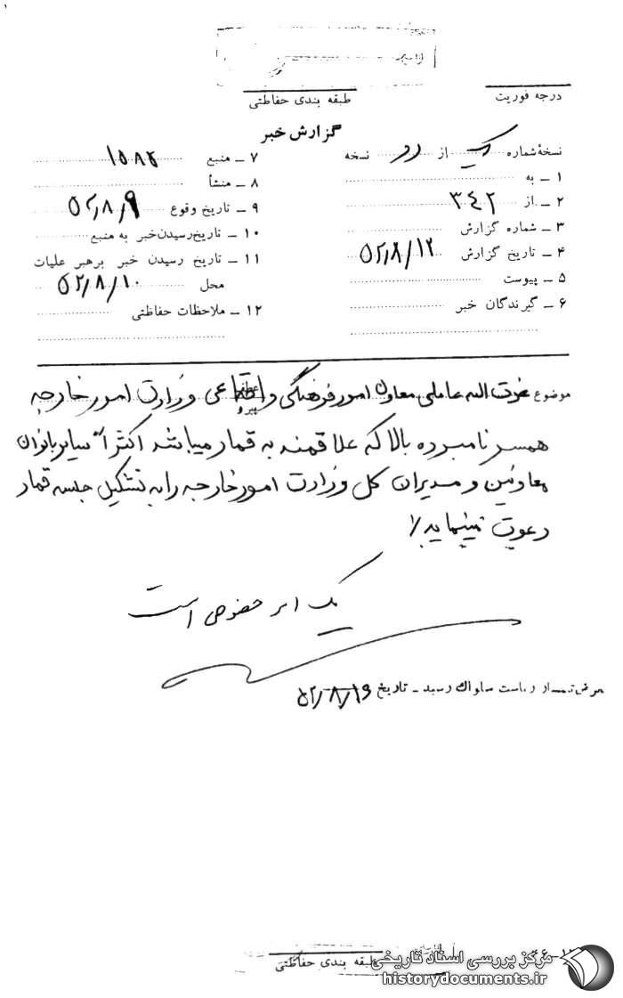 به عرض تیمسار ریاست ساواک رسید- تاریخ 16 /8 /52