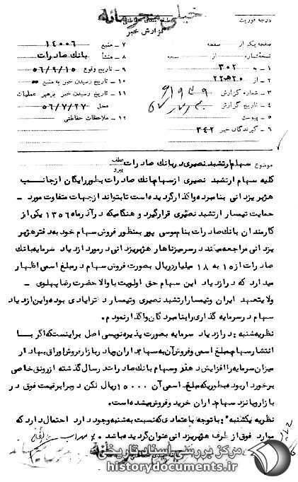 موضوع: سهام ارتشبد نصیری در بانک صادرات