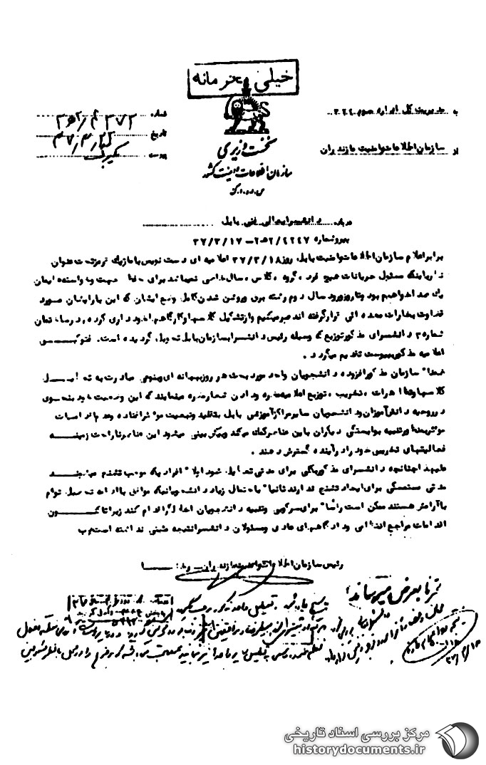 برابر اعلام سازمان اطلاعات و امنیت بابل روز 18 /3 /37 اعلامیهای دستنویس با ماژیک قرمز تحت عنوان نظر به این که مسئول جریانات هیچ فرد، گروه، کلاس و سال خاصی نمیباشد برای حفظ جهت و خواستههایمان یک صدا خواهیم بود. تا روز ورود سال دوم رشته برق و روشن شدن کامل وضع ایشان که این بار ایشان مورد قضاوت بخارات معدهائی قرار گرفتهاند صبر میکنیم و از تشکیل کلاسها و کارگاهها خودداری کرده، در ساختمان شماره 3 دانشسرای مذکور توزیع که وسیله رئیس دانشسرا به سازمان بابل تحویل گردیده است، فتوکپی اعلامیه مذکور به پیوست1 تقدیم میگردد. ضمناً سازمان مذکور افزوده دانشجویان واحد مورد بحث هر روز به بهانهای و به نوعی مبادرت به تعطیل کلاسها و تظاهرات، تخریب، توزیع اعلامیه مضرّه و دادن شعار مضرّه مینمایند که این وضعیت خود به نحوی در روحیه دانشآموزان و دانشجویان سایر مراکز آموزشی بابل به تقلید و تبعیت مؤثر افتاده و عدم اقدامات مؤثر به منظور تنبیه به وابستگی دیگران به این عناصر کمک میکند و پیشبینی میشود این عناصر ناراحت زمینه فعالیتهای تخریبی خود را در آینده گسترش دهند. علیهذا چنانچه دانشسرای مذکور به کلی برای مدتی تعطیل شود اولاً افرادی که موجب تشنج میشوند مدتی مستمسکی برای ایجاد تشنج ندارند ثانیاً به احتمال زیاد دانشجویانی که موافق با ادامه تحصیل توأم با آرامش هستند ممکن است رأساً برای سرکوبی و تنبیه دانشجویان اخلالگر اقدام کنند زیرا تاکنون اقدامات مراجع انتظامی و دادگاههای عادی و مسئولان دانشسرا نتیجه مثبتی نداشته است. رئیس سازمان اطلاعات و امنیت مازندران ـ رخشا