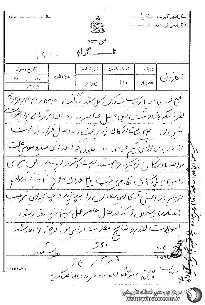 یک نسخه این تلگراف جهت اقدام