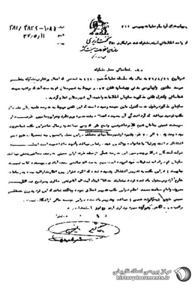 در تاریخ 26 /8 /36 به دنبال یک سلسله عملیات منبع 4۱۲۰ به شخصی که اعمال و رفتارش مشکوک به نظر میرسد مظنون و از بازرسی بدنی وی شماره تلفن ۸۰۵۷ مربوط به شهرستان قم به دست آمد که مراتب جهت شناسایی و کنترل تلفن مذکور به سازمان اطلاعات و امنیت آن شهرستان اعلام گردید. سازمان مذکور در طول مدت کنترل به این نتیجه رسیده است که این تلفن مربوط به مدرسه علمیه زنان به نام مکتب توحید میباشد که گردانندگی آن به عهده اعضاء هیأت مدیره و زیر نظر دو نفر از روحانیون طرفدار سرسخت خمینی به نامان شیخ غلامرضا شرعی و شیخ علی قدوسی1 میباشد و در حال حاضر این مکتب شبانه روز بوده و حدود 6۰ الی ۷۰ نفر دوشیزه از شهرستانهای مختلف در این محل پانسیون و به تحصیلات علوم دینی اشتغال داشته و مرتباً با خانواده و والدین خود در تماس میباشد و آنچه حائز اهمیت است اینکه شرکت کنندگان در کلاس و مدرسین این مدرسه همگی از جمله طرفداران خمینی و در صف مخالفین فعلی میباشند سازمان قم در ادامه تحقیقات خود افزوده است شیخ نعمتاله صالحی نجفآبادی2 (نویسنده کتاب شهید جاوید) در این مکتب به تدریس اشتغال و شنیده شده که اکثر دختران پیرو افکار مشارالیه بوده و در ساعات خارج از درس به منزل یاد شده تردد مینمایند مضافاً اینکه آیتاله آقا مرتضی حائری3 پسر شیخ عبدالکریم معروف و امام جماعت مسجد اعظم در این مکتب تدریس اخلاق نموده و ناگفته نماند که این فرد پدرزن مصطفی خمینی متوفی (پسر ارشد خمینی) میباشد و تدریس یاد شده در این مؤسسه خالی از اشکال نیست.