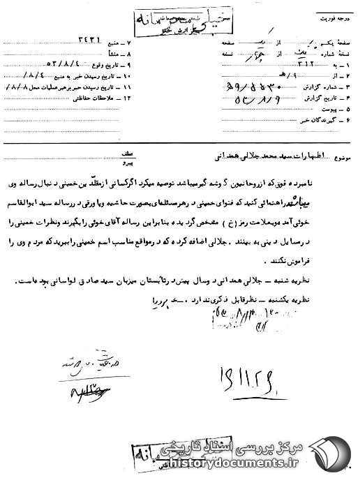 نامبرده فوق که از روحانیون گوشهگیر میباشد، توصیه میکرد اگر کسانی از مقلدین خمینی دنبال رساله وی میباشند، راهنمائی کنید که فتوای خمینی در هر مسئلهای به صورت حاشیه و پاورقی، در رساله سیدابوالقاسم خوئی آمده و به علامت رمز(خ) مشخص گردیده، بنابراین رساله آقای خوئی را بگیرند و نظرات خمینی را در مسایل دینی ببینند. جلالی اضافه کرده که در مواقع مناسب اسم خمینی را ببرید که مردم وی را فراموش نکنند.