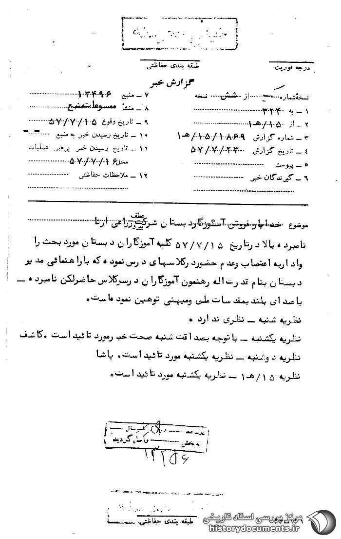 نامبرده بالا در تاریخ 15 /7 /57 کلیه آموزگاران دبستان مورد بحث را وادار به