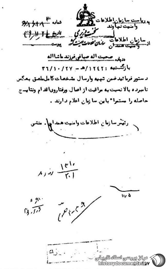 دستور فرمائید ضمن تهیه و ارسال مشخصات کامل ملصق به عکس نامبرده بالا نسبت به مراقبت از اعمال و رفتار وی اقدام و نتایج حاصله مستمراً به این سازمان اعلام دارند.