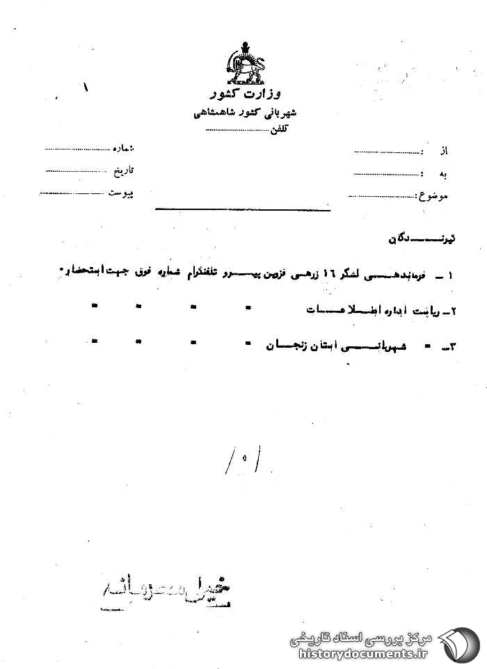 فرماندهی لشگر 16 زرهی قزوین پیرو تلفنگرام شماره فوق جهت استحضار