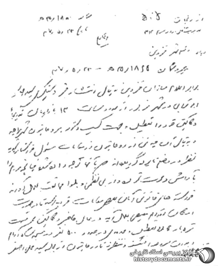 مقامات مسئول منطقه باطلاع آنها برساند ضمنا فعلاً وضع شهر مزبور ناآرام و