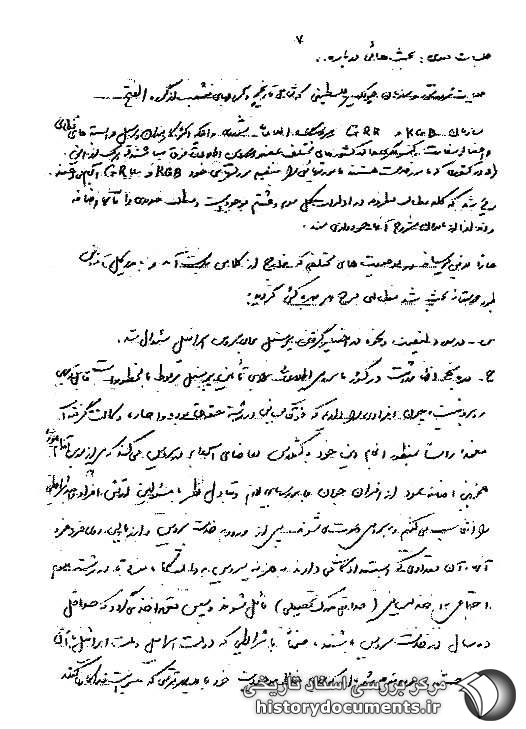 ـ سازمان K.G.B و G.R.U دو دستگاه اطلاعاتى شوروى و اینکه اکثر کارمندان و پرسنل وابستههاى نظامى و اعضاى سفارت و کنسولگرىها در کشورهاى مختلف عضو دو سرویس اطلاعاتى فوق مىباشند و هر یک از این افراد در کشورى که مأمور خدمت هستند، مأموریتهایى را به نفع سرویسهاى خود K.G.B و G.R.U انجام مىدهند... شد که کلیه مطالب مطروحه در ادارات کل سوم و هشتم موجود است و مطلب جدیدى را به آنها اضافه کردند لذا از عنوان مشروح آنها خوددارى شد.