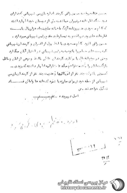حسین زاغی افزود کاظم مسعودی با اخذ پول از افسران و کارمندان شهربانی کلیه پستهای حساس را با توصیه به رئیس شهربانی در اختیار آنان میگذارد و حتی در موقع انفصال یا برکناری کارمندان خاطی با اخذ وجوهی از آنان وسایل بازگشت آنان را به خدمت فراهم میکند. مشارالیه اظهار داشته که به زودی کمیسیونی با شرکت چند نفر از امریکاییها و عضویت چند نفر از کارمندان بازرسی شهربانی از جمله خودش برای مبارزه با شیرهکشخانهها و اماکن فساد تشکیل خواهد شد.