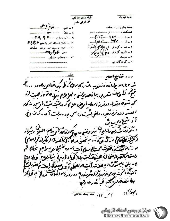 1- گزارشات رسیده از ایران مبنی بر قتل عامهای مکرّر در شهرهای مذهبی اصفهان و شیراز (تکثیر از فجر اسلام)؛