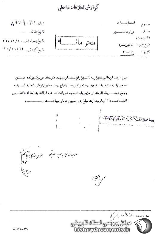 شماره: 2 ـ 3ـ 5929 تاریخ: 11 /12 /1339