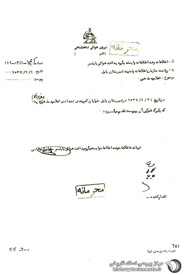 از: اطلاعات و ضداطلاعات وابسته به گروه پدافند هوایی بابلسر