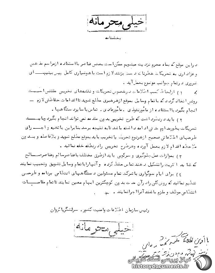 1) از لحاظ کسب اطلاعات در خصوص تحریکات و نقشه های تخریبی مقتضی