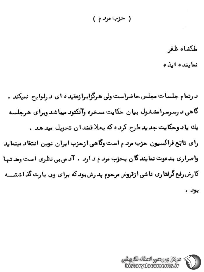 در تمام جلسات مجلس حاضر است ولی هرگز ابراز عقیدهای در لوایح نمیکند.