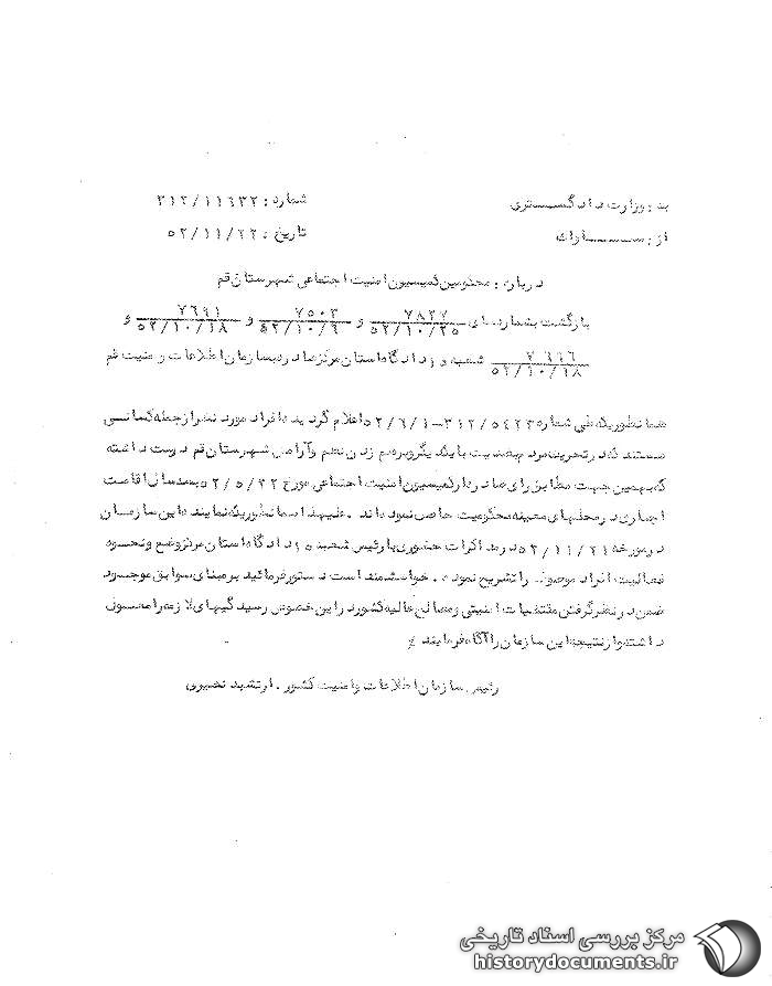 درباره: محکومین کمیسیون امنیت اجتماعی شهرستان قم بازگشت به شماره های 7827 و 25/10/52 و 7503 ـ 6/10/52 و 7691 ـ18/10/52 و 7696 ـ 18/10/52 شعبه 15 دادگاه استان مرکز صادره به سازمان اطلاعات و امنیت قم