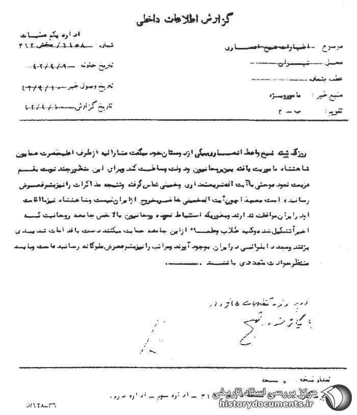 روز گذشته شیخ واعظ انصاری1 به یکی از دوستان خود میگفت مشارالیه از طرف اعلیحضرت همایون شاهنشاه مأموریت یافته بین روحانیون و دولت وساطت کند و برای این منظور چند نوبت به قم عزیمت نموده و حتی با آیتالله شریعتمداری و خمینی تماس گرفته و نتیجه مذاکرات را نیز به شرفعرض رسانیده است. معهذا چون آیتالله خمینی حاضر به خروج از ایران نیست و شاهنشاه نیز با اقامت او در ایران موافقت ندارند و به طوری که استنباط نموده و روحانیون بالاخص جامعه روحانیت که اخیراً تشکیل شده و کلیه طلاب و علماء از این جامعه حمایت میکنند دست به اقدامات شدیدی بزنند و مجدداً بلوائی در ایران به وجود آوردند و مراتب را نیز به شرفعرض ملوکانه رسانیده است و باید منتظر حوادث متعددی باشند.