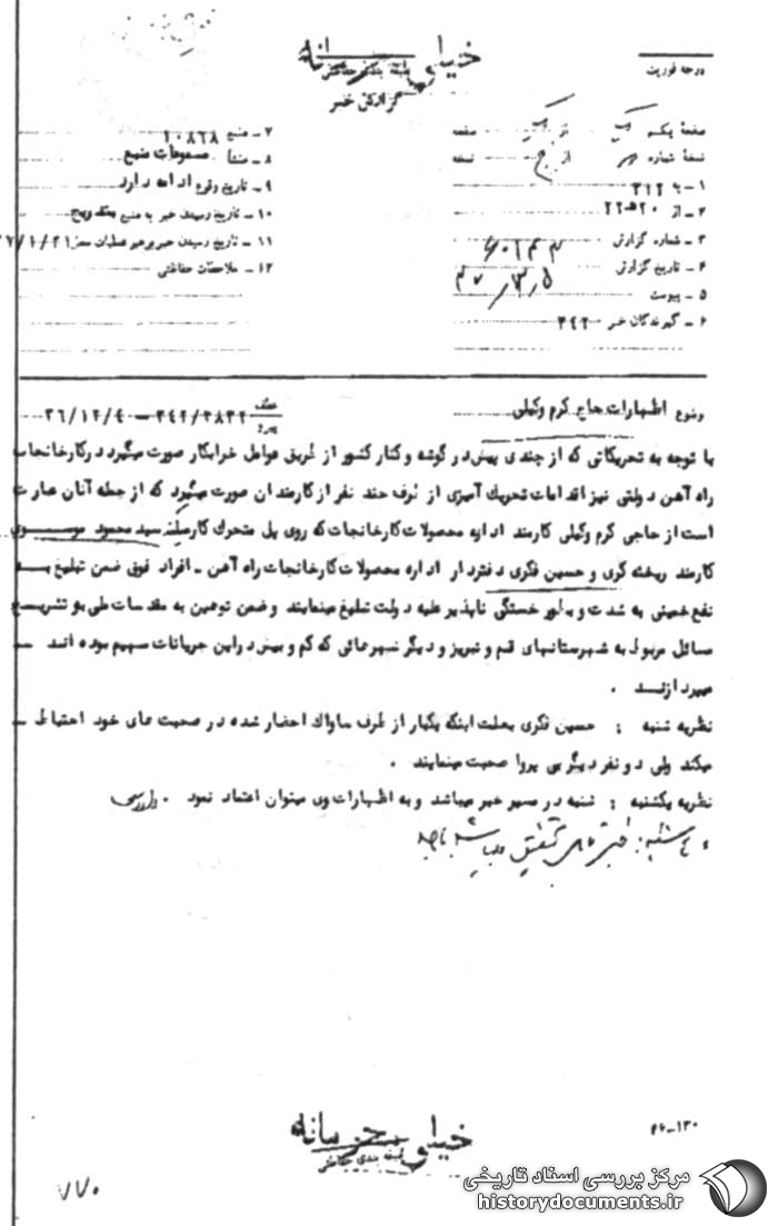 خرابکار صورت میگیرد در کارخانجات راه آهن دولتی نیز اقدامات تحریک آمیزی
