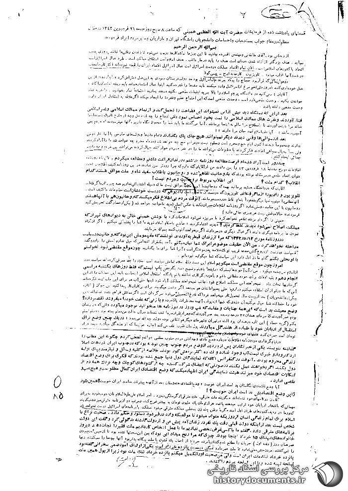 مستدعیات و احساسات دانشجویان دانشگاه تهران و بازاریان و سایر مردم ایراد