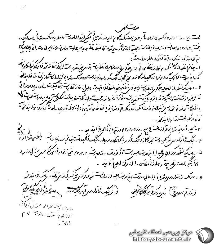 6ـ ساواک و ژاندارمری و شهربانی با ارسال رونوشت این صورت جلسه از ادارات متبوعه مرکزی خود