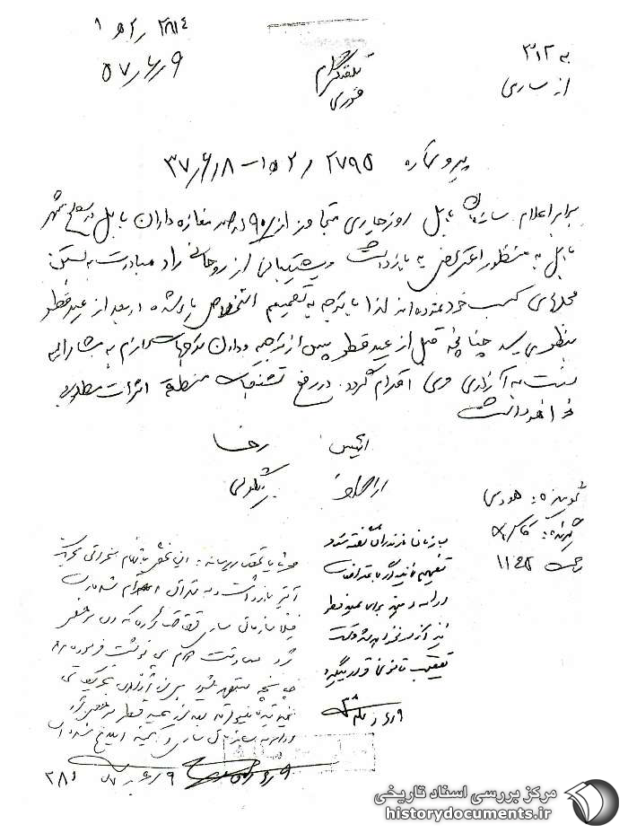 به سازمان مازندران گفته شود تفهیم نمایند اگر به اعتراضات ادامه دهند برای عید فطر نیز آزاد نخواهد شد و تحت تعقیب قانونی قرار میگیرد. ثابتی 9 /6 /37