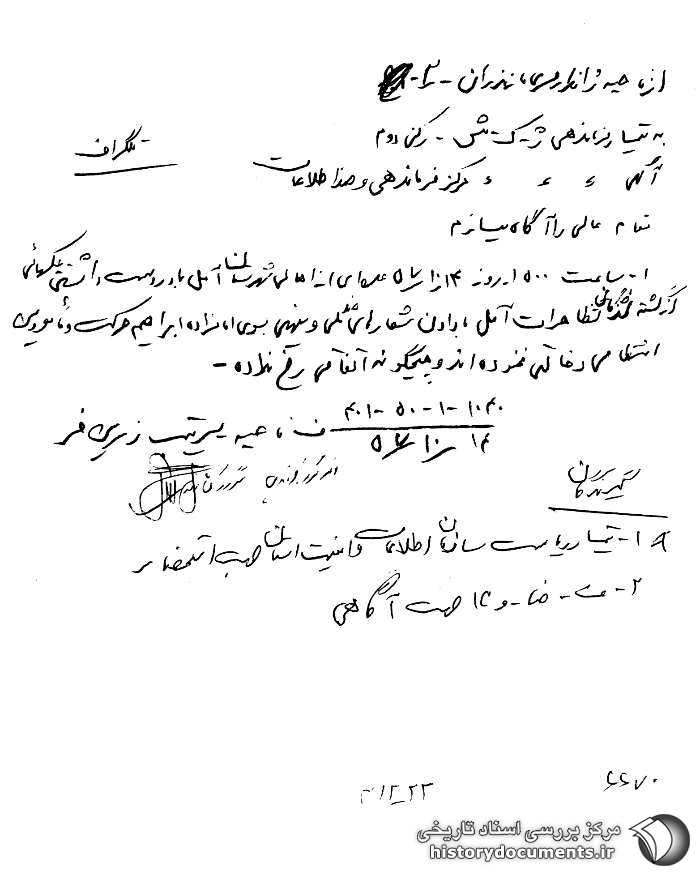 آگهی به تیمسار فرماندهی مرکز فرماندهی و ضد اطلاعات