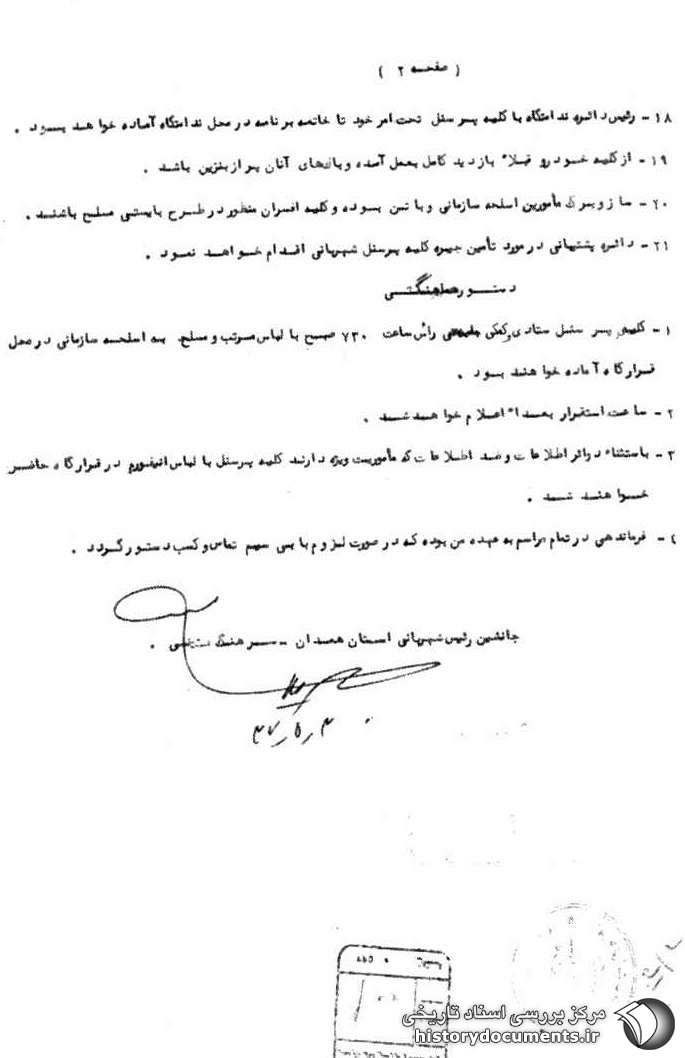 4- فرماندهی در تمام مراسم به عهده من بوده که در صورت لزوم با بیسیم تماس و کسب دستور گردد.