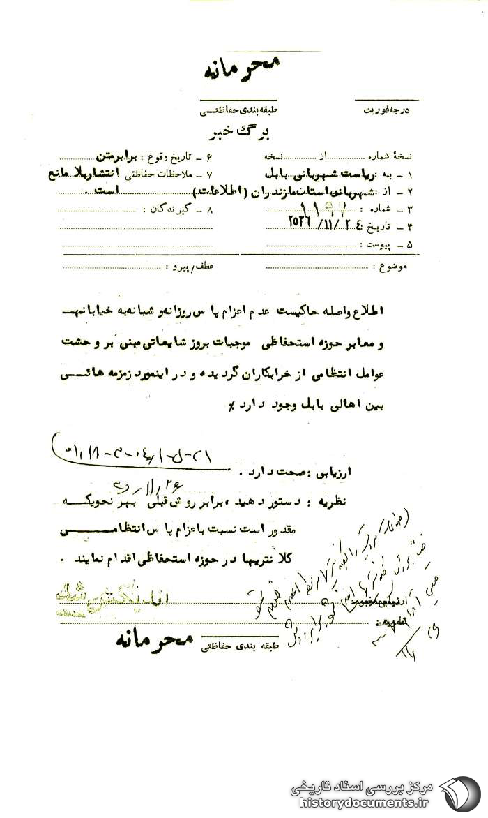 اطلاعات مراتب را به کلانتریهای مربوطه اعلام [ناخوانا] ضمناً به روسای کلانتریها ابلاغ شود برابر روش قبلی اقدام نمایند 26 /11 /36 21-5-1 /04-3-18 /01- 26 /11 /36